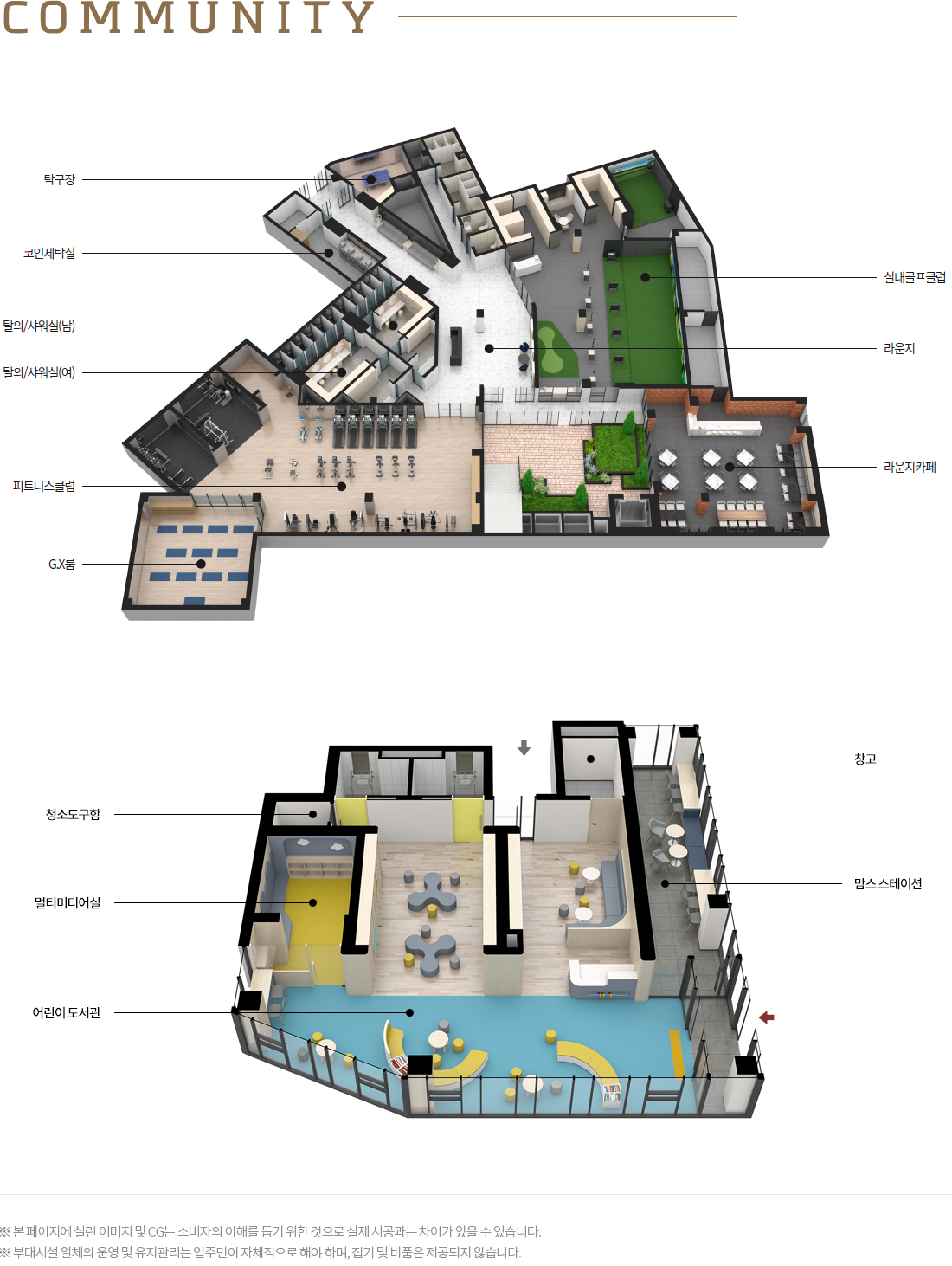 커뮤니티 시설의 이용을 돕는 안내데스크 및 휴게공간