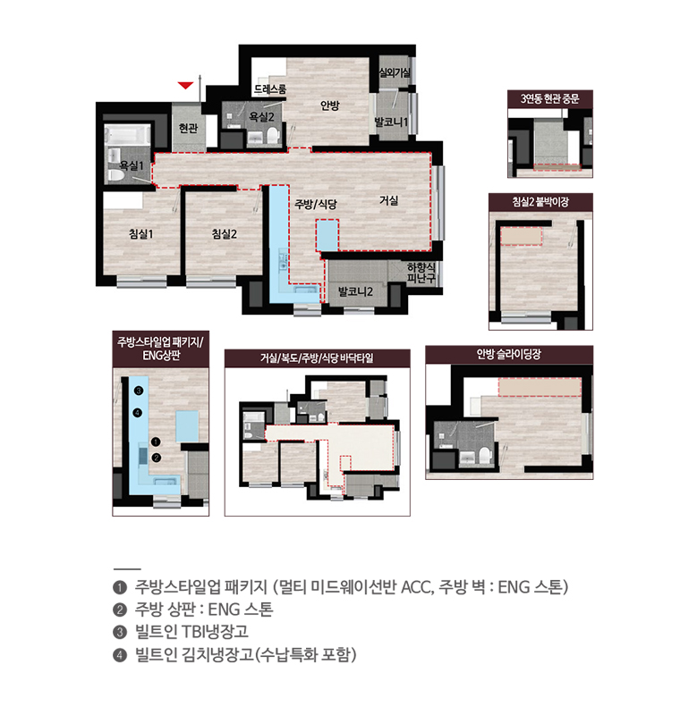 ※ 단위세대는 대칭형으로도 시공되어 일부 거실, 안방, 침실 주방의 향이 달라질 수 있으니 필히 확인하시기 바랍니다.