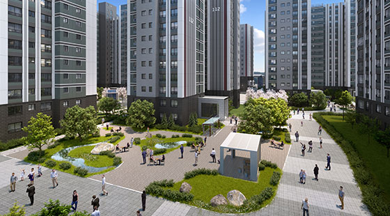 계절감 있는 나무와 꽃들 사이로 가족 또는 이웃과 함께
