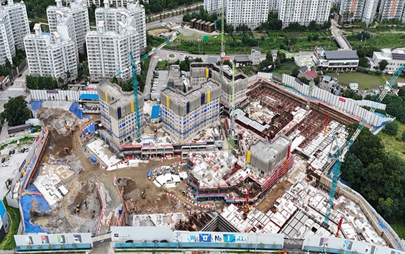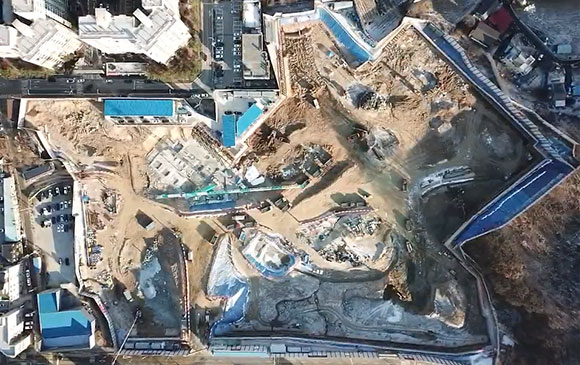 현재 토공사 및 흙막이 공사 및 타워크레인 설치 및 철근콘크리트 공사중에 있습니다.