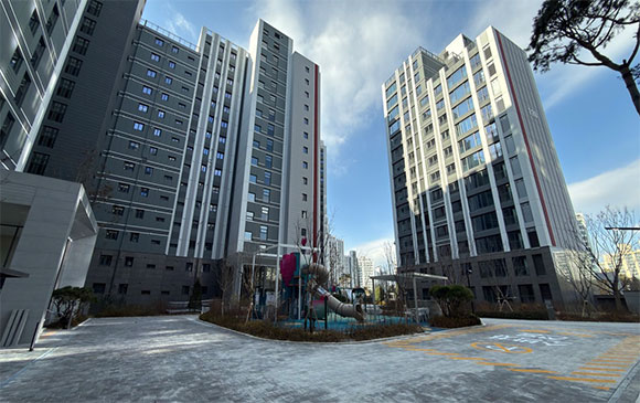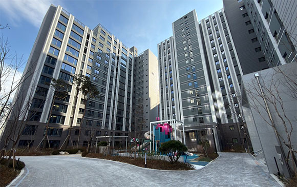 현재 도배 및 마루공사, 타일 공사, 지하 및 실내 도장공사, 부대토목 공사, 조경공사 및 놀이시설물 설치 공사,가구 설치 공사 중에 있습니다.