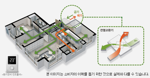 ▷ 실내의 오염된 공기를 배출하고 외부의 신선한 공기를 열교환 시켜 공급해줌으로써 쾌적한 실내 환경을 유지할 수 있음.