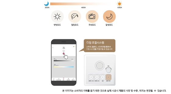 사용자의 기호에 따라 밝기 및 색온도를 조절할 수 있는 디밍시스템 입니다.