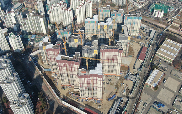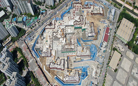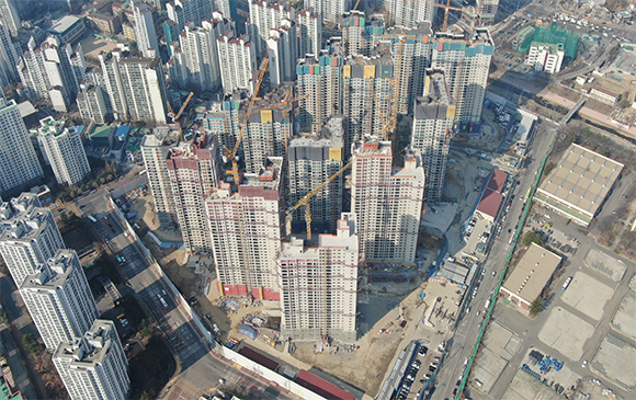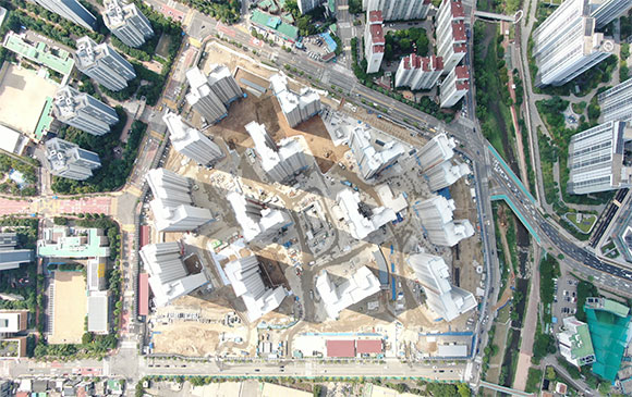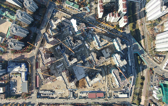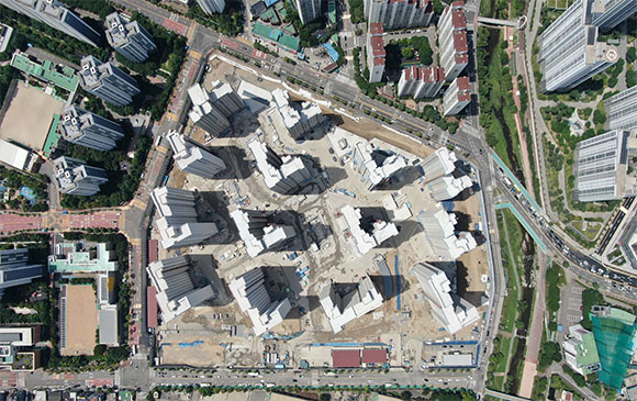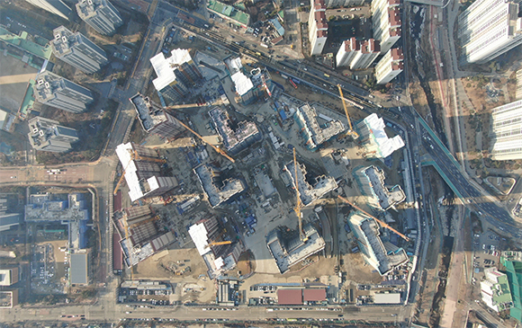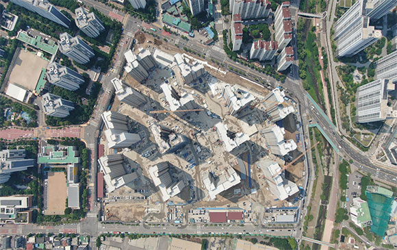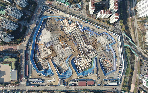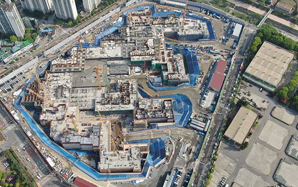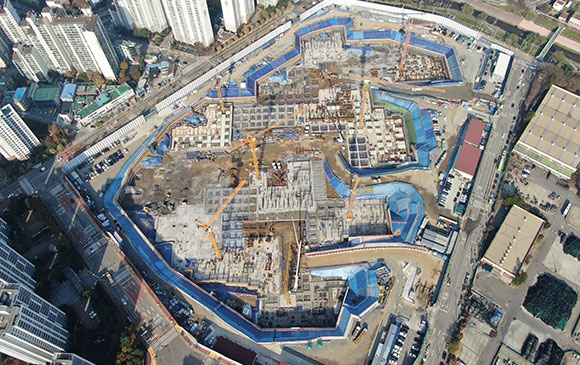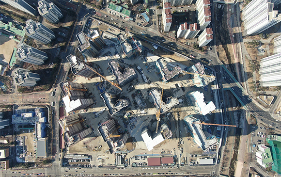 -. 철근콘크리트공사 : APT 및 주변 지하주차장 지붕층 ~ 3F 바닥 콘크리트 타설,