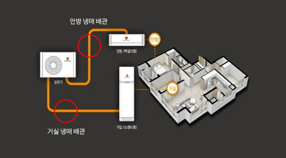 - 입주 후 거실과 안방에 에어컨을 설치할 때 실외기실까지 배관이