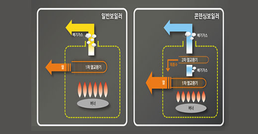 - 보일러 연소 시 발생한 배기 가스의 버려지는 열을