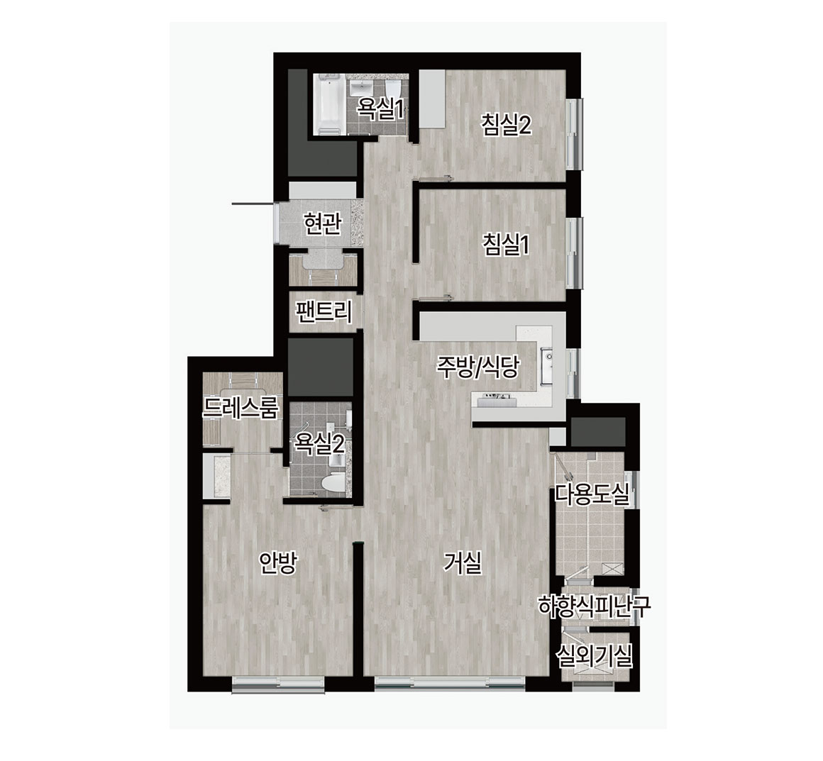 ※ 상기 단위세대 평면도는 소비자의 개략적인 이해를 돕기 위한 것으로 평면, 면적, 마감재는 실제 공사 시 다소 변경될 수 있습니다.
