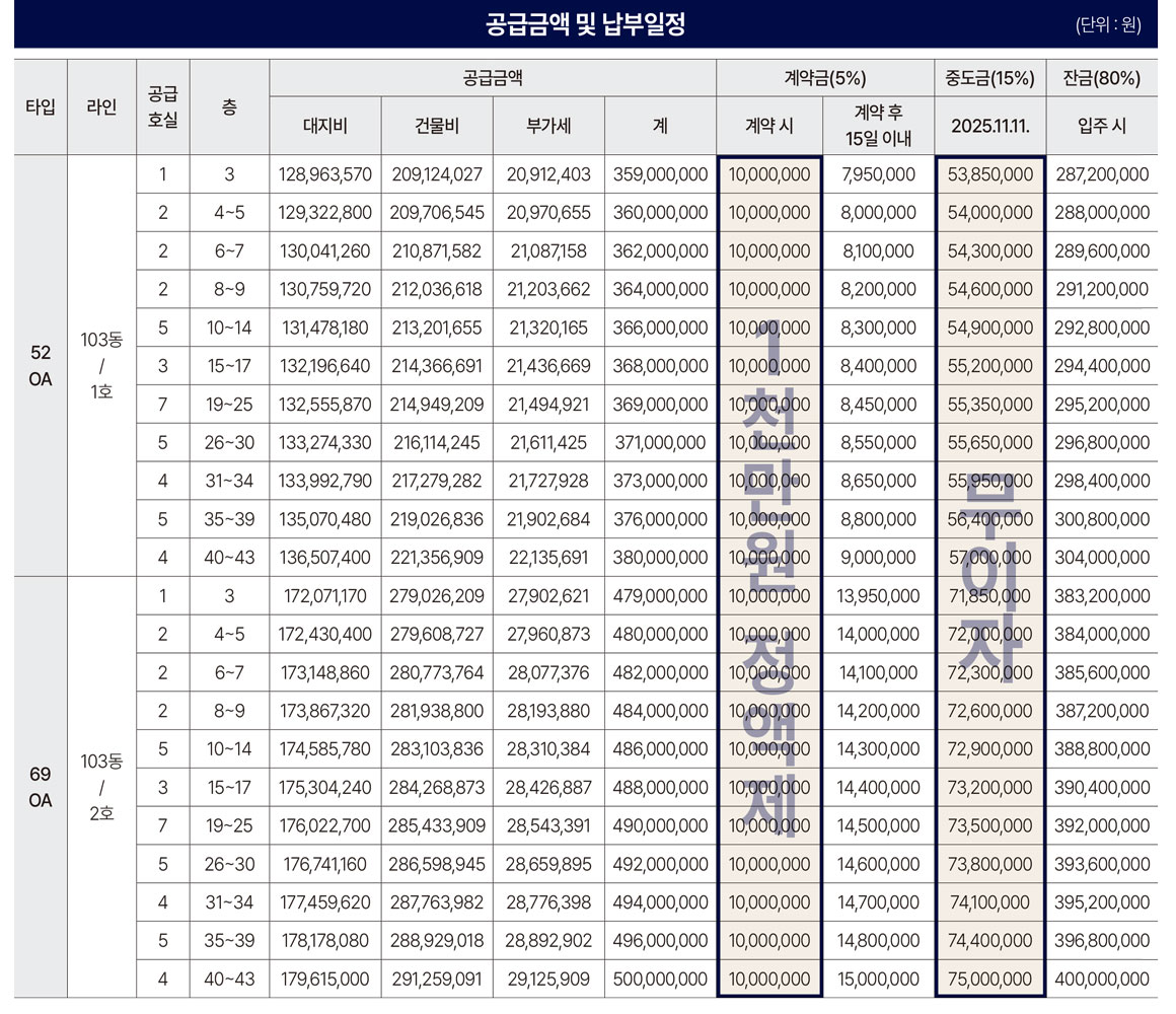 공급금액 및 납부일정