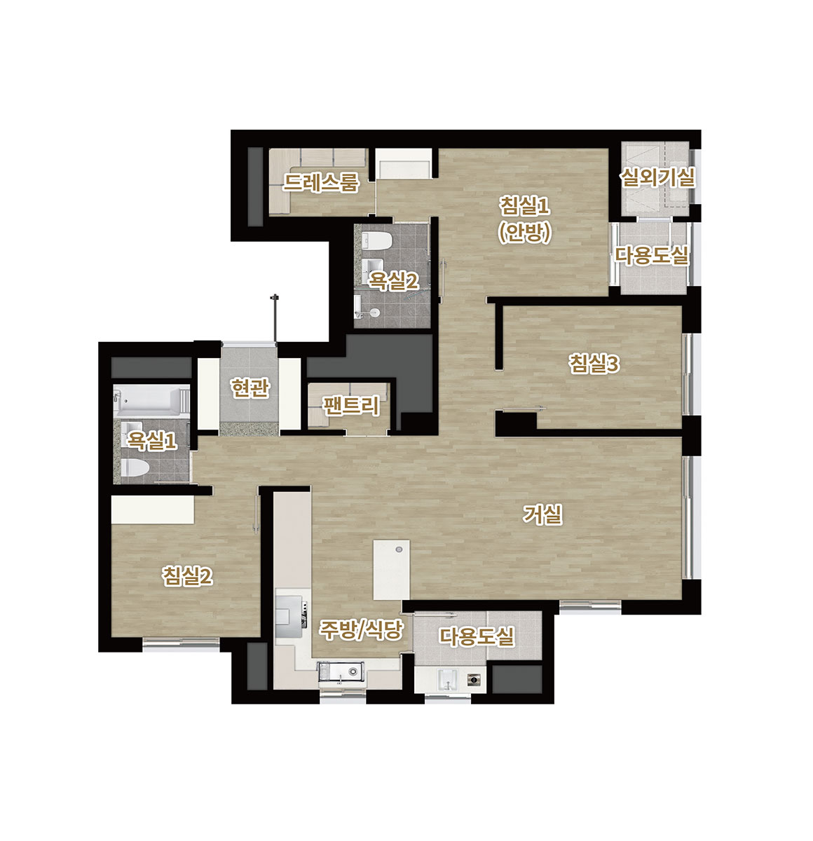 ※ 일부세대는 대칭형으로도 시공되어 일부 거실, 안방, 침실, 주방의 향이 달라질 수 있으니 필히 확인하시기 바랍니다.